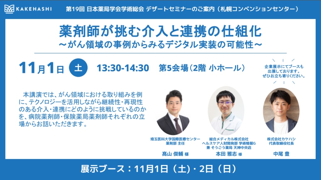 第19回 日本薬局学会学術総会デザートセミナー登壇/展示ブース出展