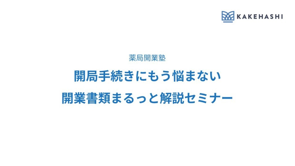 薬局開業塾は独立に伴う『だいじょうぶかな、を解消する』ことをコンセプトに掲げ、開業にまつわる知見を各分野の専門家にお話しいただくセミナーです。